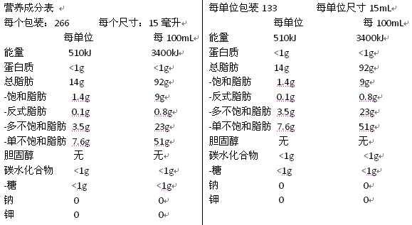 挑選一款好的調(diào)和油首先要看配方。營(yíng)養(yǎng)科學(xué)發(fā)展到現(xiàn)在,營(yíng)養(yǎng)學(xué)家們已經(jīng)對(duì)主要的人體膳食營(yíng)養(yǎng)素做了科學(xué)入量建議,針對(duì)咱中國(guó)人的2013版《中國(guó)居民膳食營(yíng)養(yǎng)素參考攝入量》DRIs中就有膳食脂肪酸的三種脂肪酸攝入量及范圍的建議。當(dāng)然這個(gè)需要有營(yíng)養(yǎng)學(xué)專家給大家解讀才能明白。對(duì)于咱老百姓最簡(jiǎn)單及科學(xué)的方式,就是大家挑選的時(shí)候,一定仔細(xì)關(guān)注營(yíng)養(yǎng)標(biāo)簽中的脂肪酸組成。挑選脂肪酸營(yíng)養(yǎng)配比科學(xué)的食用油。建議您從今天起,選擇有助脂肪酸均衡的健康型調(diào)和油。在此附上兩款食用油的營(yíng)養(yǎng)標(biāo)簽:(從中可以看出兩款油中的脂肪酸含量,對(duì)人的健康營(yíng)養(yǎng)攝入具有很大的幫助)。